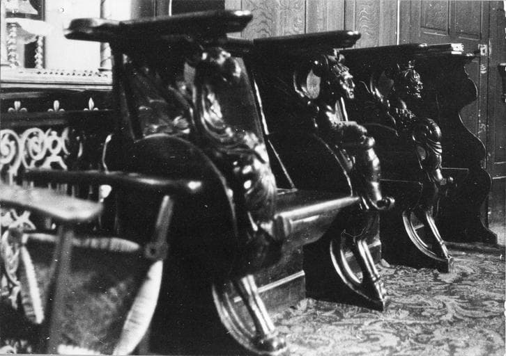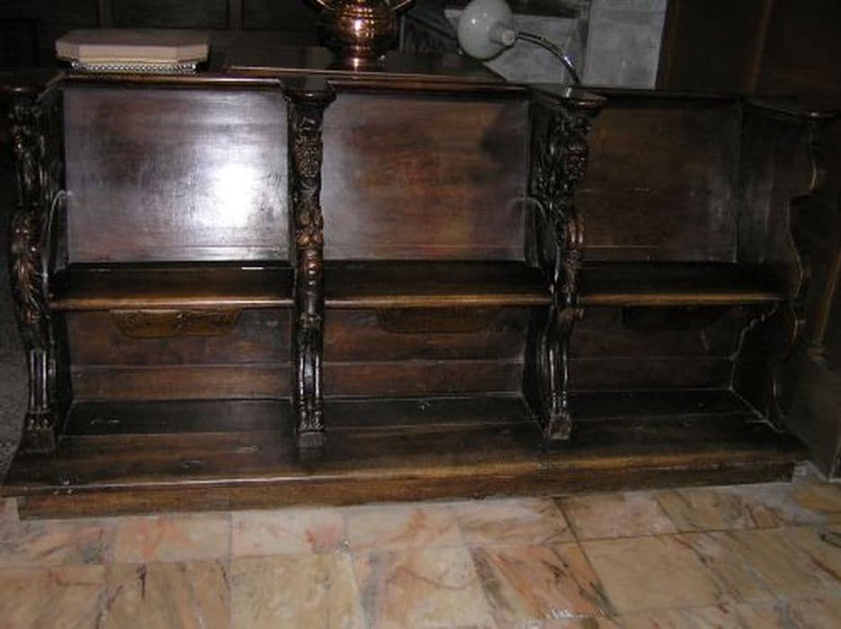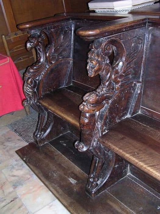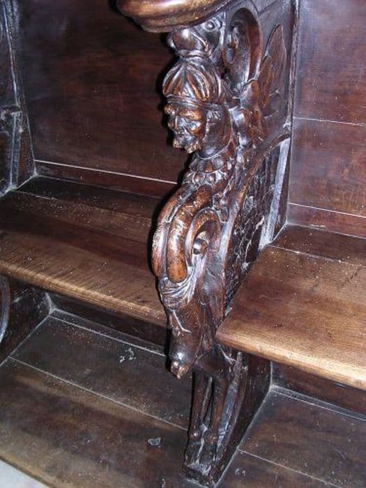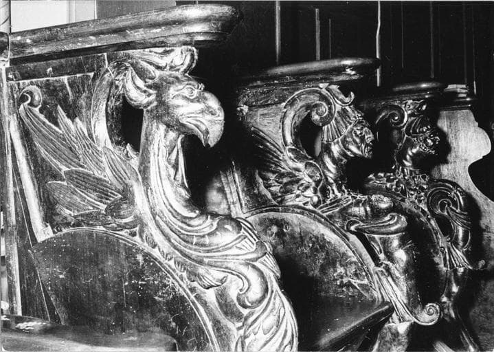 Trois stalles. Accoudoirs et miséricordes sculptés.