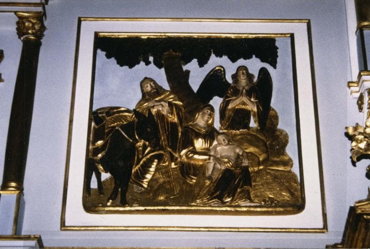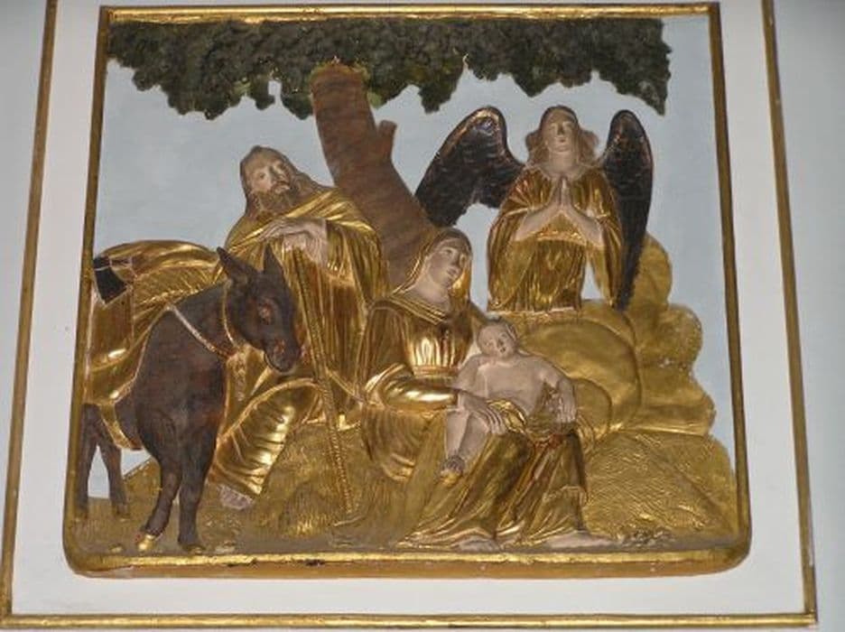 2 bas-reliefs : le Mariage de Marie et de Joseph, la Fuite en Egypte