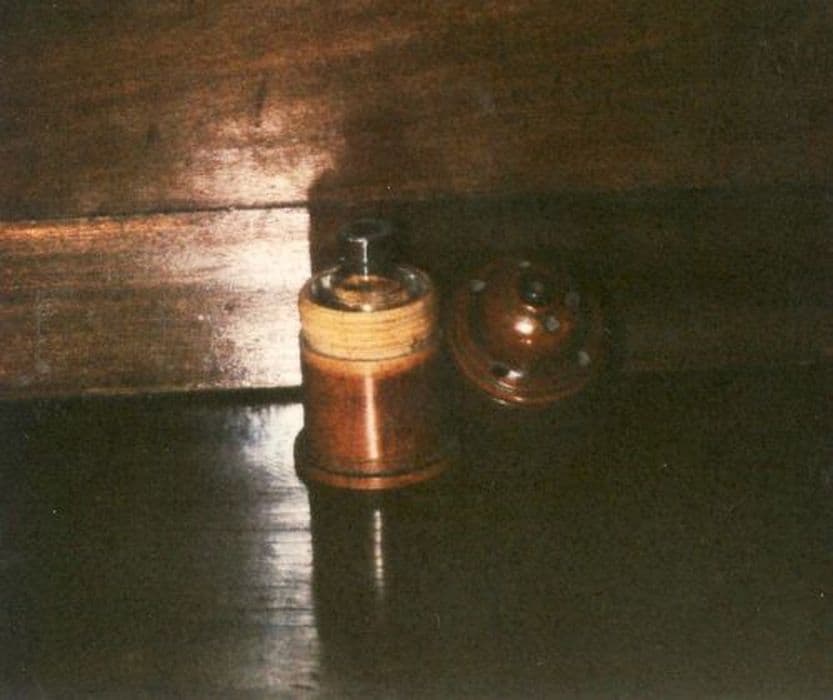 deux instruments ou matériel de pharmacie (boîtes à emporter les sirops)