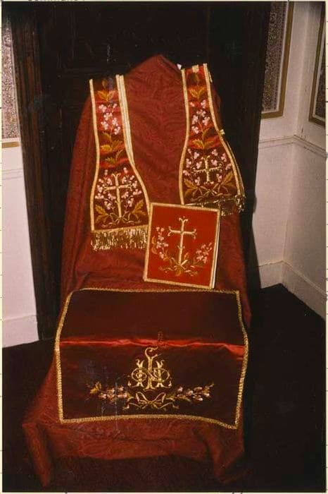 POP | Plateforme ouverte du patrimoineétole de clerc, voile de calice, manipule et bourse de corporal (ornement rouge)