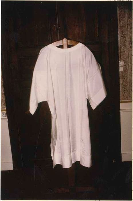 Dalmaticelle en soie verte soulignée de blanc identique à la tunicelle (PM09001569).