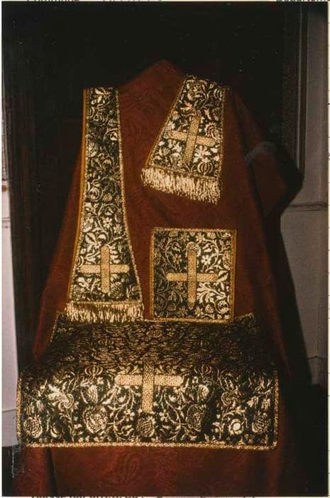 ornement liturgique : étole de clerc, voile de calice, manipule, bourse de corporal et chasuble