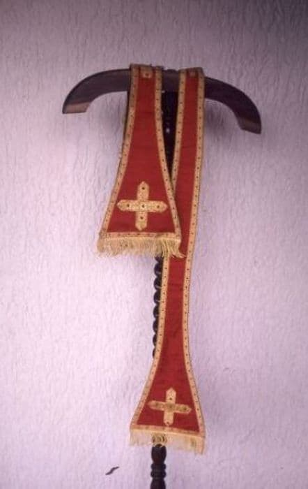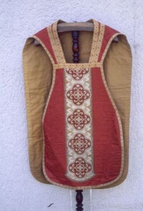 ornement liturgique catholique ; chasuble ; étole de clerc ; manipule ; voile de calice