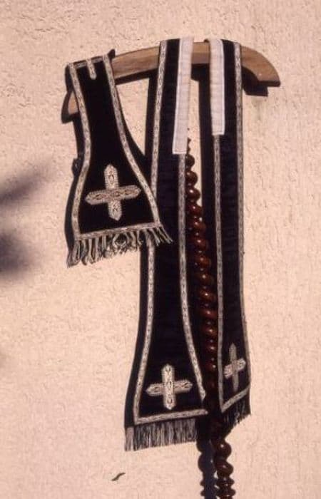 ornement liturgique catholique ; chasuble ; étole de clerc ; manipule ; voile de calice ; bourse de corporal