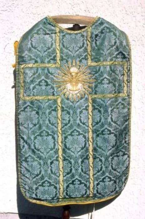 chasuble, étole de clerc, manipule, voile de calice (ornement vert)