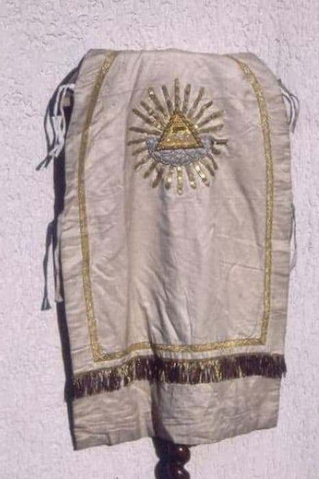 Ornement blanc. Dosseret en soie écrue et passementerie droite dorée. Doublure en soie écrue.