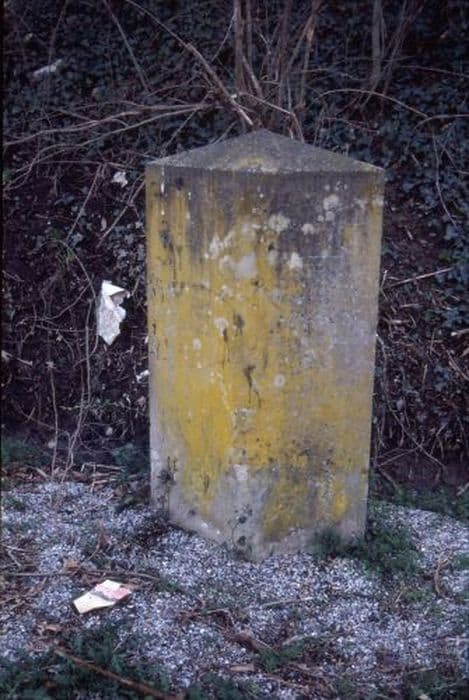 Borne de route impériale n°20 et n°119 en pierre triangulaire gravée.