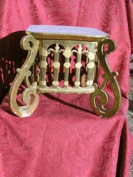 Thabor en bois doré. Pieds en forme de volute, panneaux ajourés ornés de colonnettes.