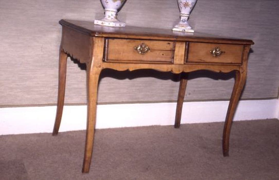 Petit bureau en bois de style Louis XV avec deux tiroirs.
