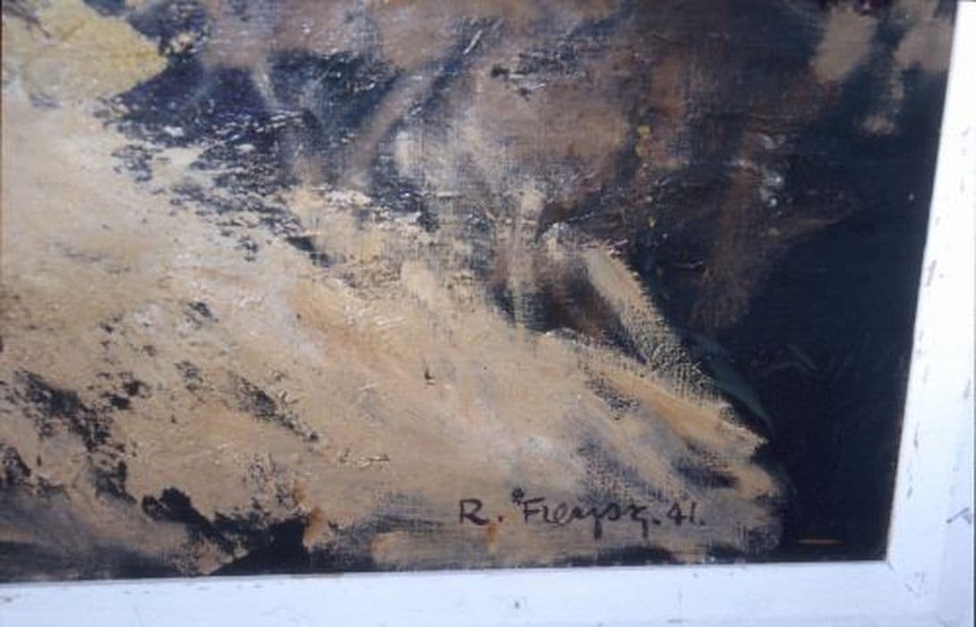 Toile peinte dans un cadre en bois.