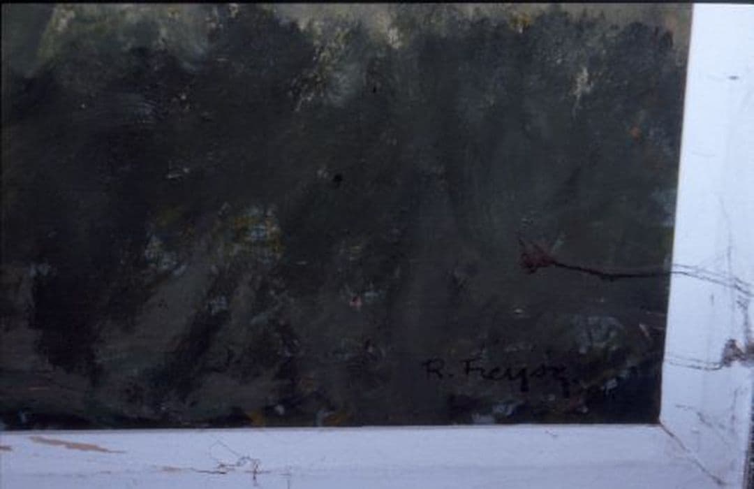 Toile peinte dans un cadre en bois.