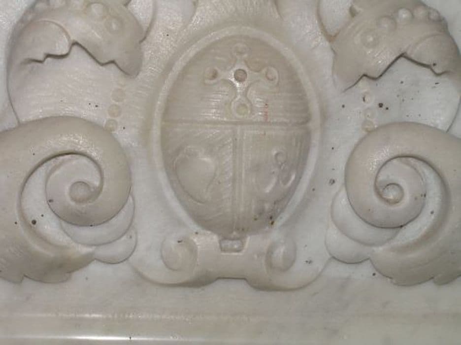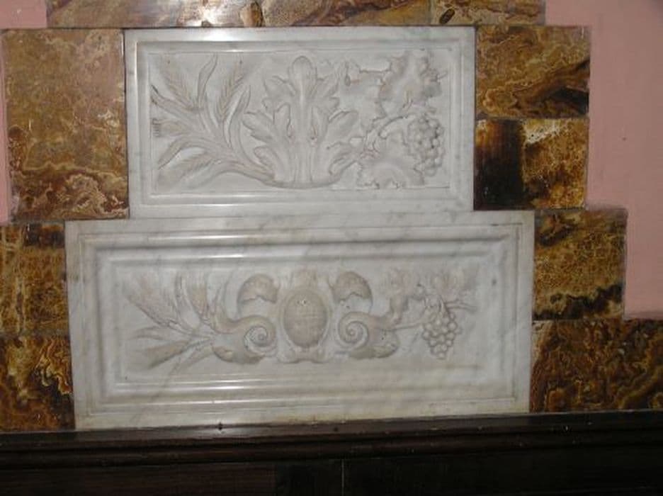 Eléments en marbre blanc de l'ancien autel néogothique.