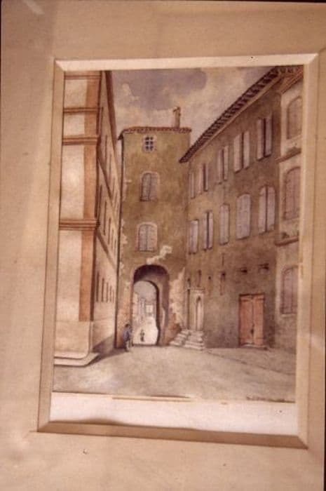 dessin et son cadre : Porte de Villeneuve à Pamiers