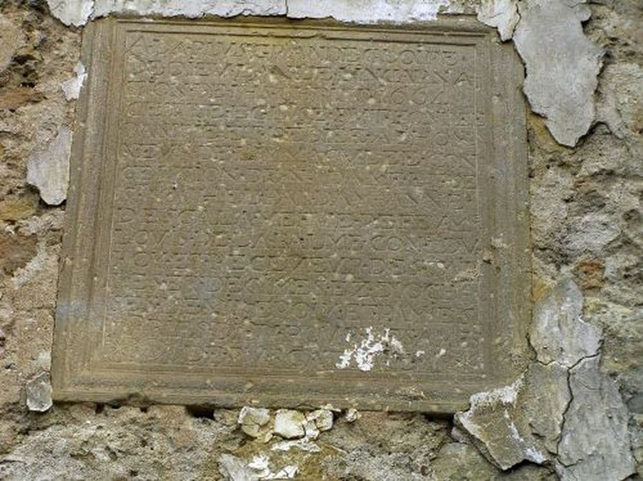 Plaque en pierre gravée et moulurée sur le cadre.