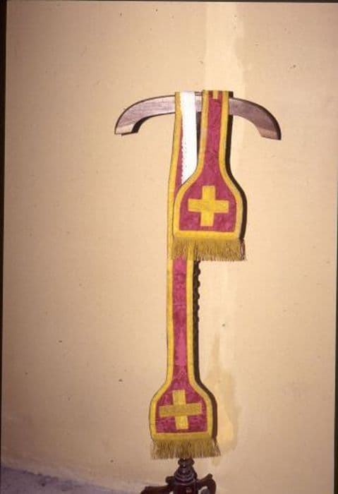 chasuble (2) ; étole de clerc (3) ; manipule (3) ; voile de calice ; bourse de corporal ; ornement liturgique catholique