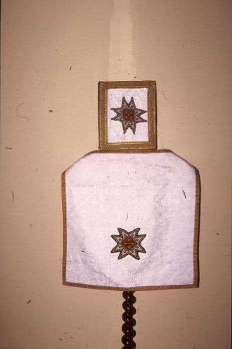 chasuble ; manipule ; voile de calice ; bourse de corporal (2) ; ornement liturgique catholique