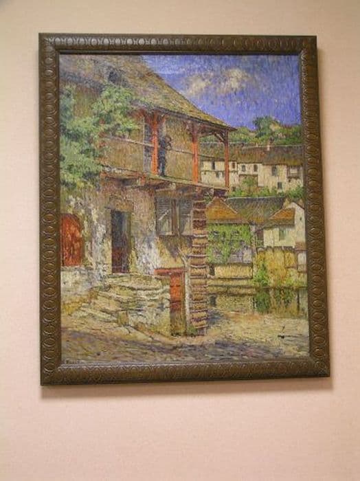 POP | Plateforme ouverte du patrimoinetableau et son cadre : Village avec personnage au balcon
