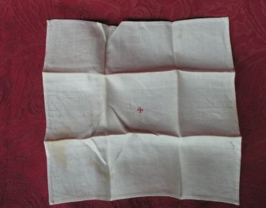Corporal en lin blanc avec croisette rouge brodée au centre.