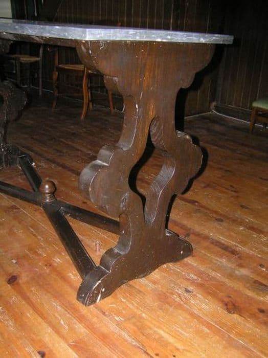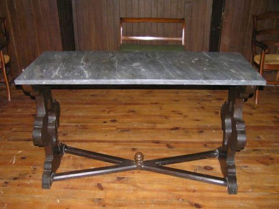 Table de la Sainte-Cène en bois. Dessus en marbre gris veiné de blanc.