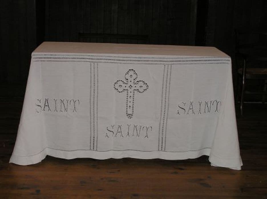 Nappe de l'autel de la Sainte-Cène en lin blanc.