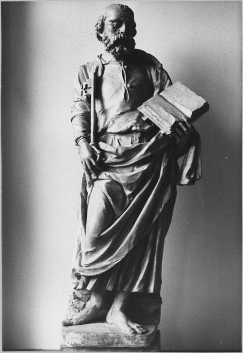 Semble faire la paire avec la statue de saint Paul dans le même édifice, bas-côté sud (PM10003049). Restauré par Chiquet en 1972.