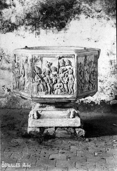 POP | Plateforme ouverte du patrimoineFonts baptismaux : Baptême de Clovis, Pentecôte, Massacre des Innocents, Baptême du Christ