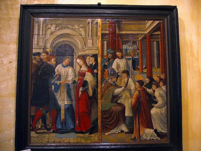 Panneau peint : Mariage de la Vierge, confirmation (recto), saint Loup (verso) (Trésor des Eglises de Brienne-le-Château)