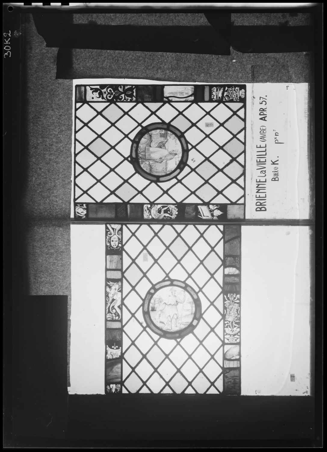 Vitraux, 15-11-1894. Arrêté du 2 décembre 2008 : Considérant que les verrières du XVIème S. ont été classées à tort au titre des monuments historiques comme objets mobiliers et qu'elles constituent des éléments immobiliers de l'église de Brienne-la-Vielle (Aube) classée postérieurement en totalité, l'arrêté susvisé en date du 15 novembre 1894 est abrogé.
