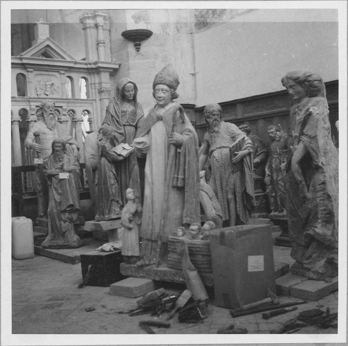 Provient peut-être d'un groupe sculpté, une Annonciation, dont la Vierge serait celle du bas-côté sud, 2e pilier.