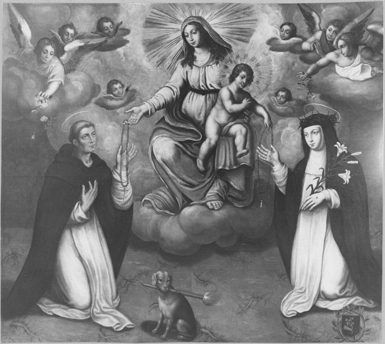 saint Dominique, sainte Catherine de Sienne, chapelet ; Vierge