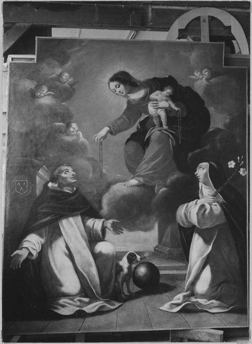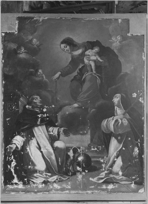 saint Dominique, sainte Catherine de Sienne, chapelet ; Vierge