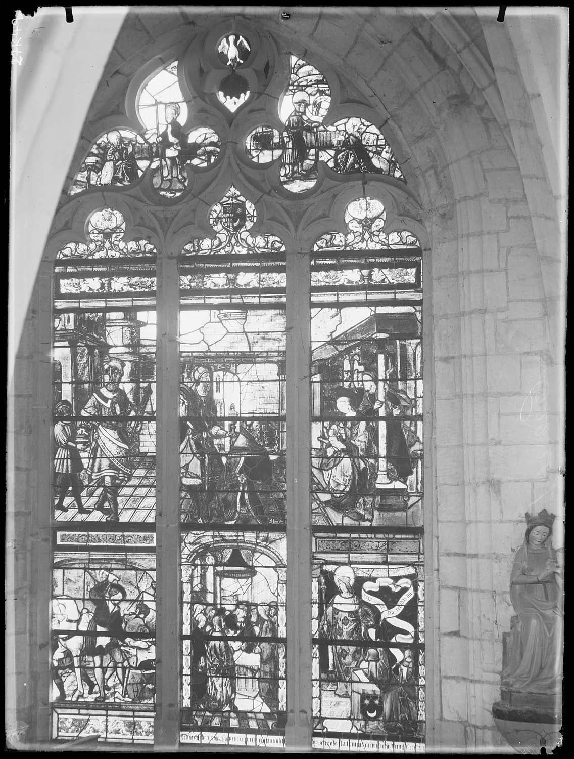 POP | Plateforme ouverte du patrimoine7 verrières : Vie et mort de la Vierge, Arbre de Jessé, Vierge de Pitié, Passion du Christ, saints, donateurs, Enfance du Christ, Dieu le Père en pape