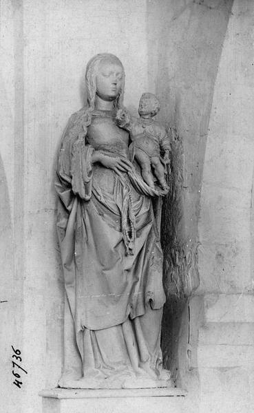 La Vierge à l'Enfant, statue placée contre un pilier de la nef, côté sud, pierre, 16e siècle, 20-04-1896.