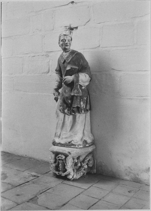 Saint Vincent, statue et son socle sculpté, pierre polychrome, 16e siècle, 11-12-1980.