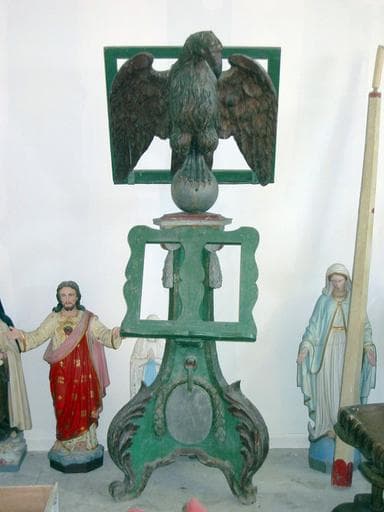 Le lutrin comporte deux reposoirs opposés et à deux hauteurs différentes.