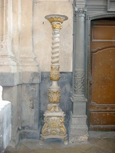 Deux pieds de cierge pascal, bois et stuc, 17e siècle, 27-12-1913.