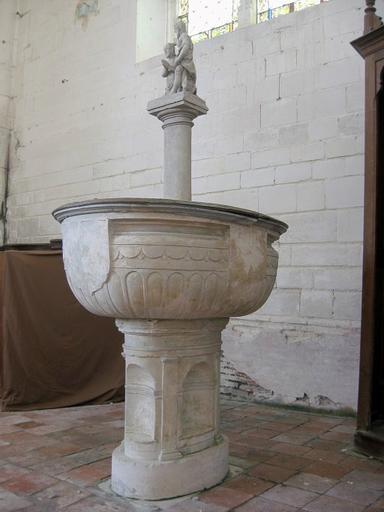 Fonts baptismaux, pierre sculptée, fin du 16e siècle, 17-10-1908.