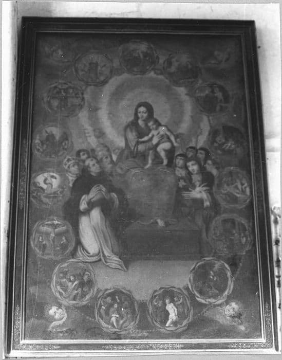 saint Dominique, sainte Catherine de Sienne, chapelet ; Vierge