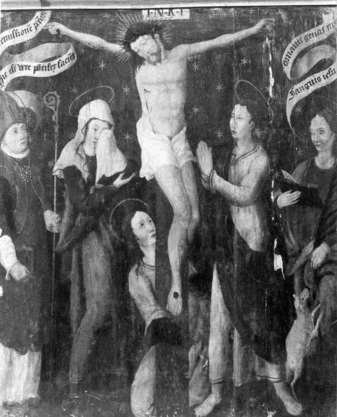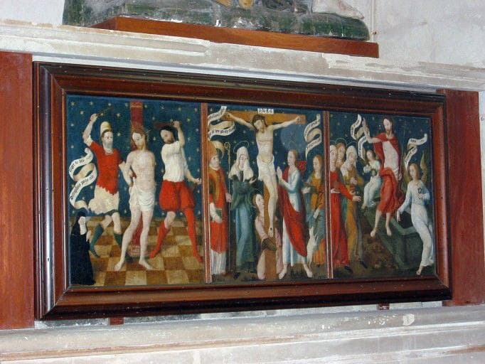 3 panneaux peints : Flagellation, Crucifixion, Résurrection