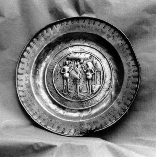 Plateau d'offrande : le Paradis terrestre, cuivre repoussé, 15e siècle (sacristie), 27-12-1913.