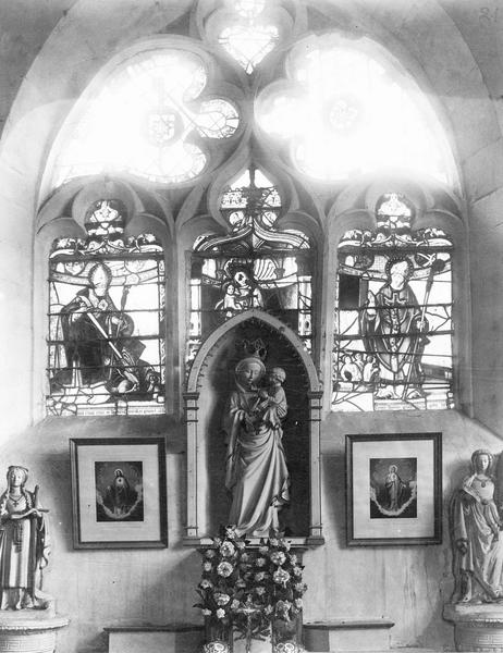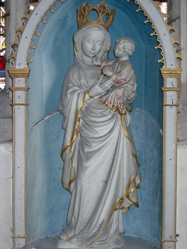 La Vierge à l'Enfant, statue surmontant l'autel du transept sud, pierre, 16e siècle (sic), 17-10-1908.