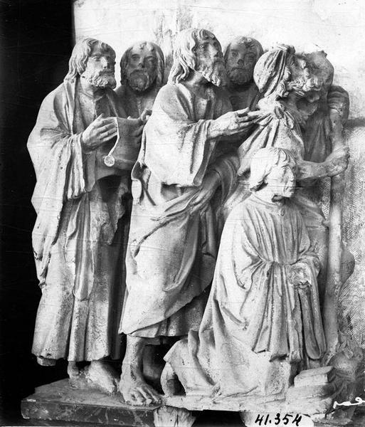 Donateur et cinq saints, groupe, pierre, première moitié du 16e siècle, 18-02-1908.