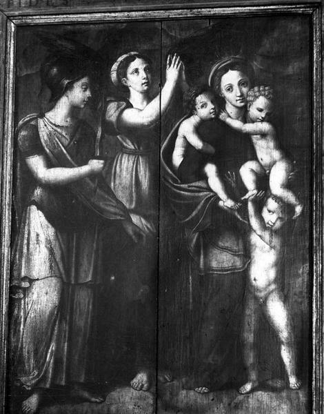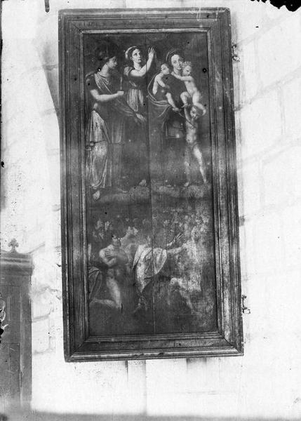 Deux volets de triptyque, panneaux peints ; face : les Vertus. revers : l'Annonciation, grisaille, 16e siècle, 15-09-1894.