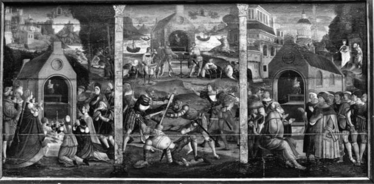 POP | Plateforme ouverte du patrimoine2 panneaux peints : Légende de la sainte maison de Lorette (dépôt de l'Hôtel-Dieu au musée des Beaux-Arts)