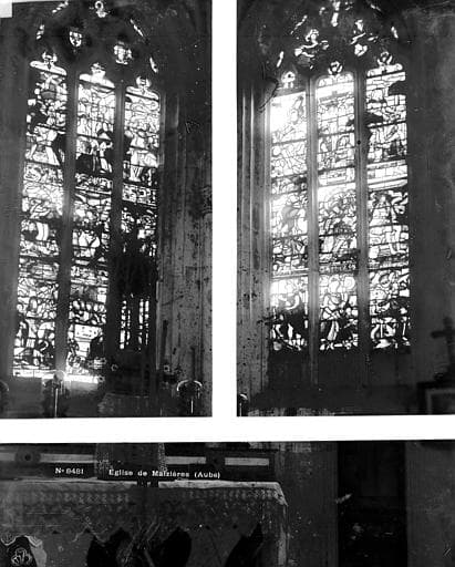POP | Plateforme ouverte du patrimoine3 verrières : Histoire d'Adam et Eve, vie de la Vierge, Dieu le Père, anges musiciens, Passion du Christ, pélican