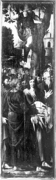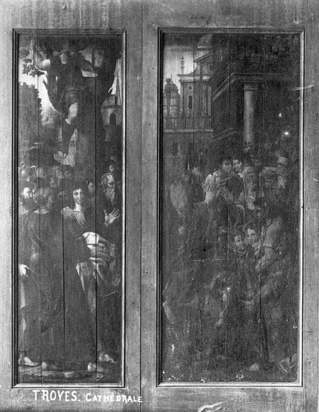 POP | Plateforme ouverte du patrimoinePanneau peint : Entrée du Christ à Jérusalem, Naissance de la Vierge (grisaille)