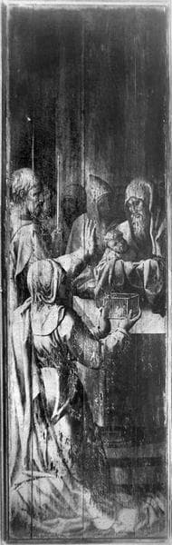 Panneau peint : Lavement des pieds, Présentation au Temple, grisaille