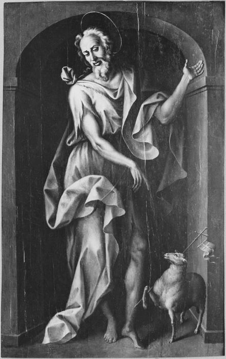 POP | Plateforme ouverte du patrimoinePanneau peint dit panneaux Fliche : Vision de saint Joachim, saint Jean-Baptiste (grisaille)