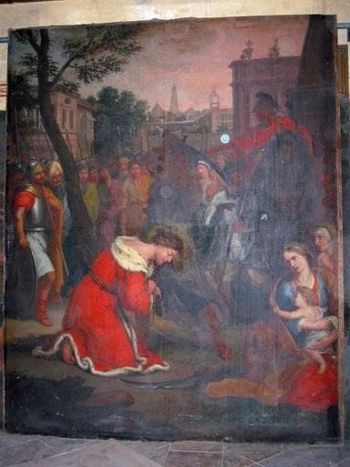 Tableau : Scène de la vie de saint Pantaléon (arrestation du saint ?)