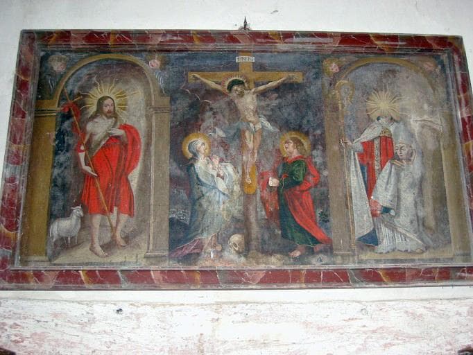 Tableau : Crucifixion, saint Jean-Baptiste et saint Denis